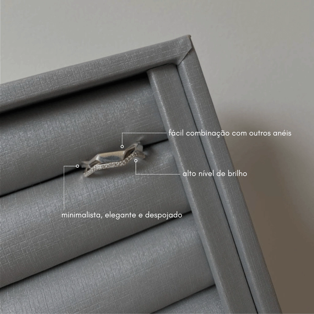 Com sua base lisa e delicada, o destaque fica por conta da zircônia que adiciona um brilho sutil e sofisticado. Versátil e cheio de estilo, esse anel fica incrível usado sozinho para um toque elegante ou em combinações com outros anéis para um mix cheio de personalidade.